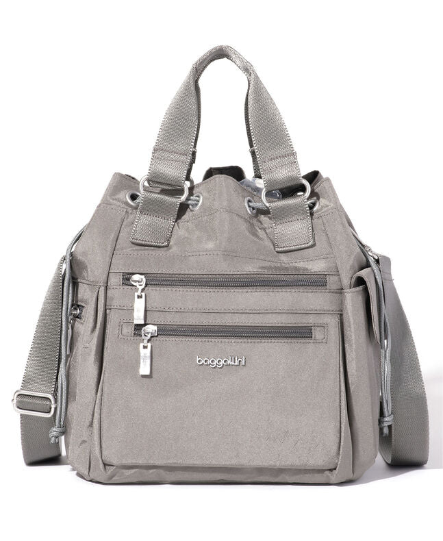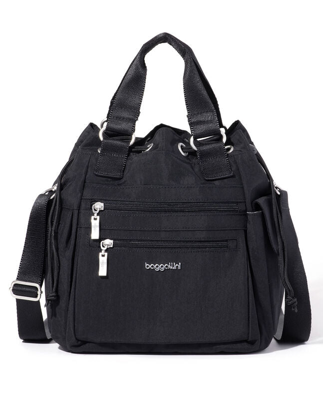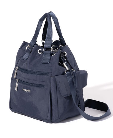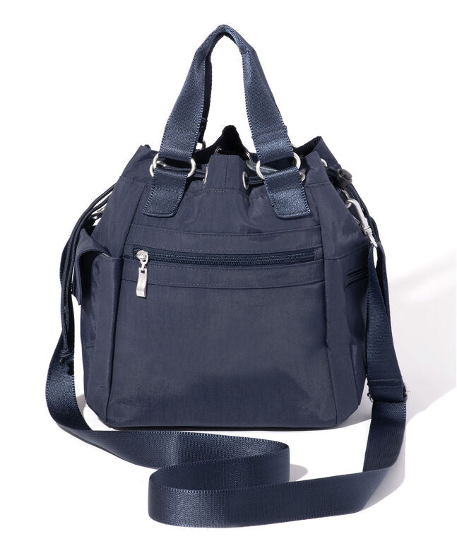 Featuring a quick-access drawstring opening, this drawstring bag is all about convenience. Thoughtful touches like a key leash, privacy pocket, pen loop, and scratch-resistant pocket offer extra organization options, while the carry handle and crossbody strap let you wear your drawstring crossbody bag however you'd like.