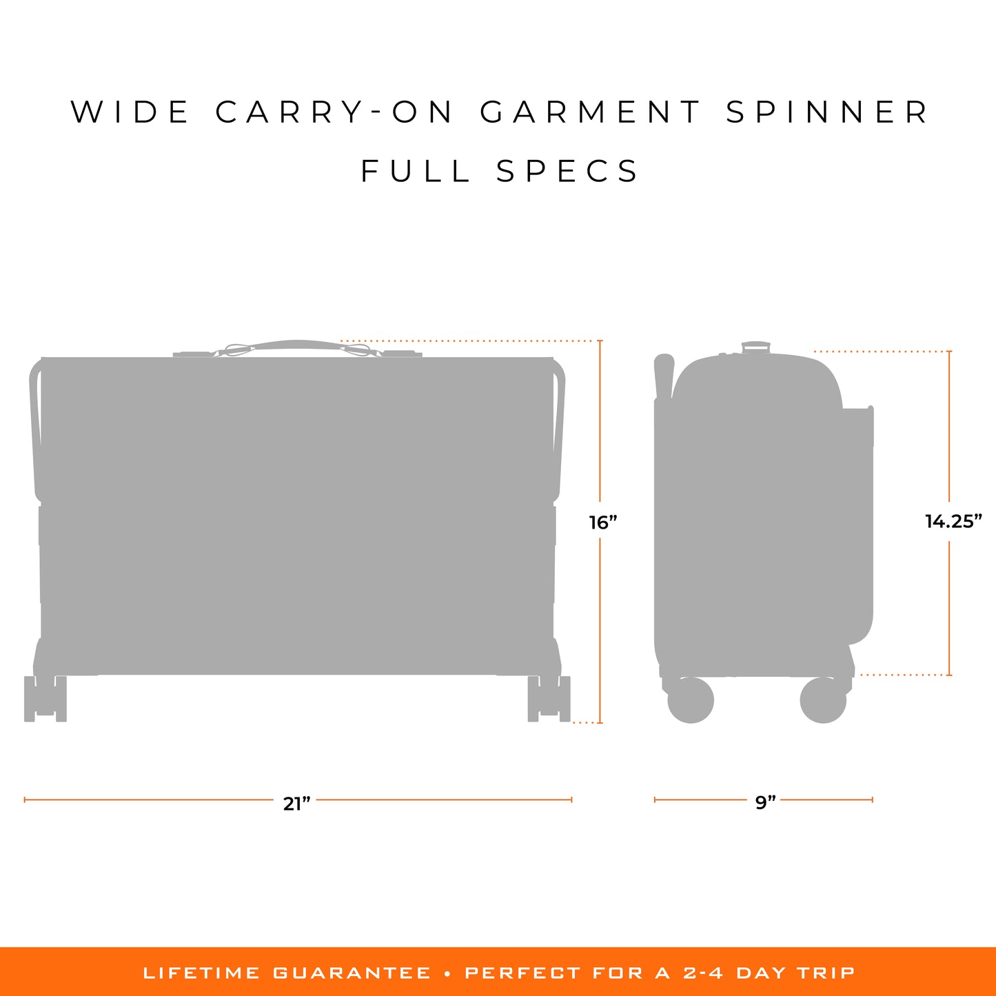 Our Wide Carry-on Garment Spinner is a remarkable bag for a quick trip. With an array of compartments to keep you organized on the go, you'll be arriving in style.
