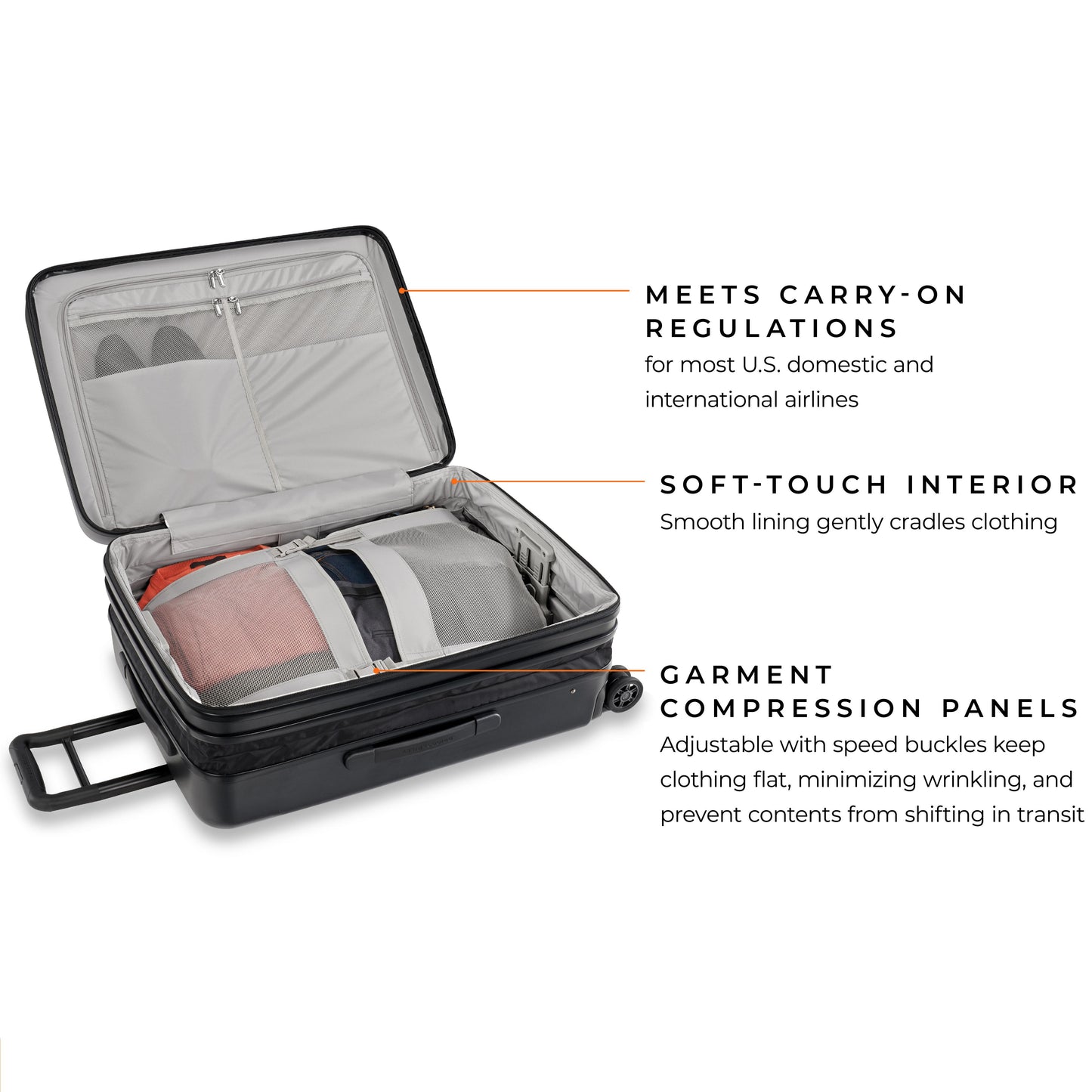 - Briggs & Riley fabric bag with drawstring included: protects suitcase when in storage.
