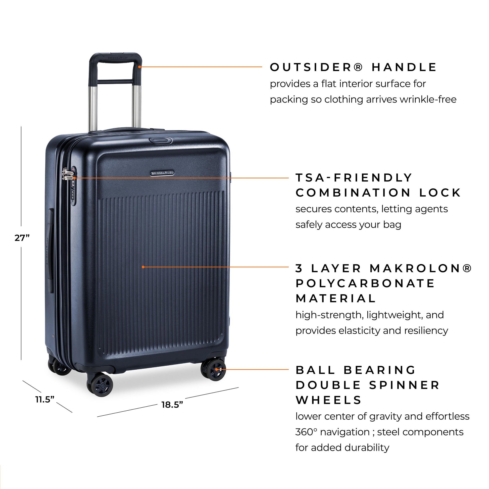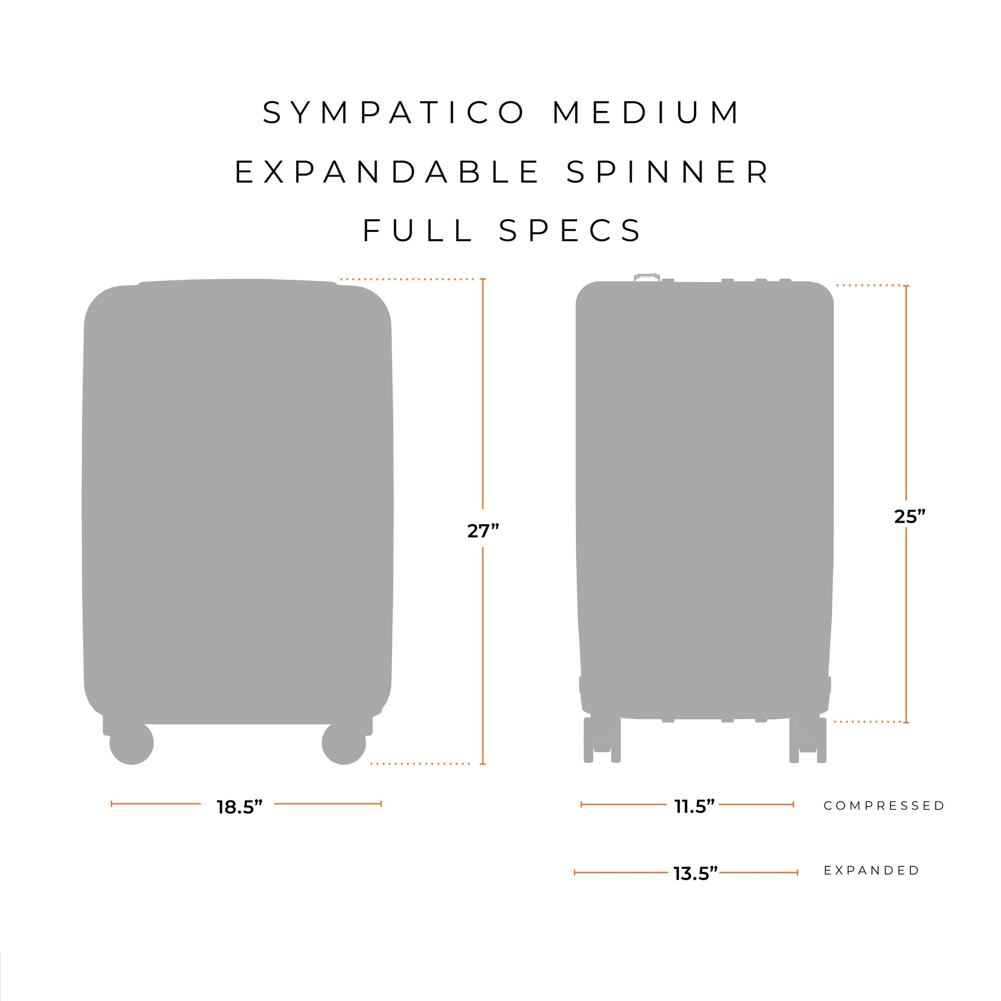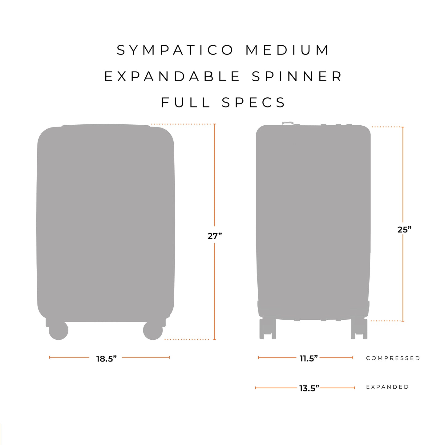 Style says it all in the Medium Expandable Spinner. This fashionable polycarbonate bag is ideal for a 4-7 day trip, giving you all the security, durability, and peace of mind that you need when traveling to your next destination with its integrated TSA-friendly locking system. CX® technology gives you 17% more packing space, then allows you to compress it back to original size.