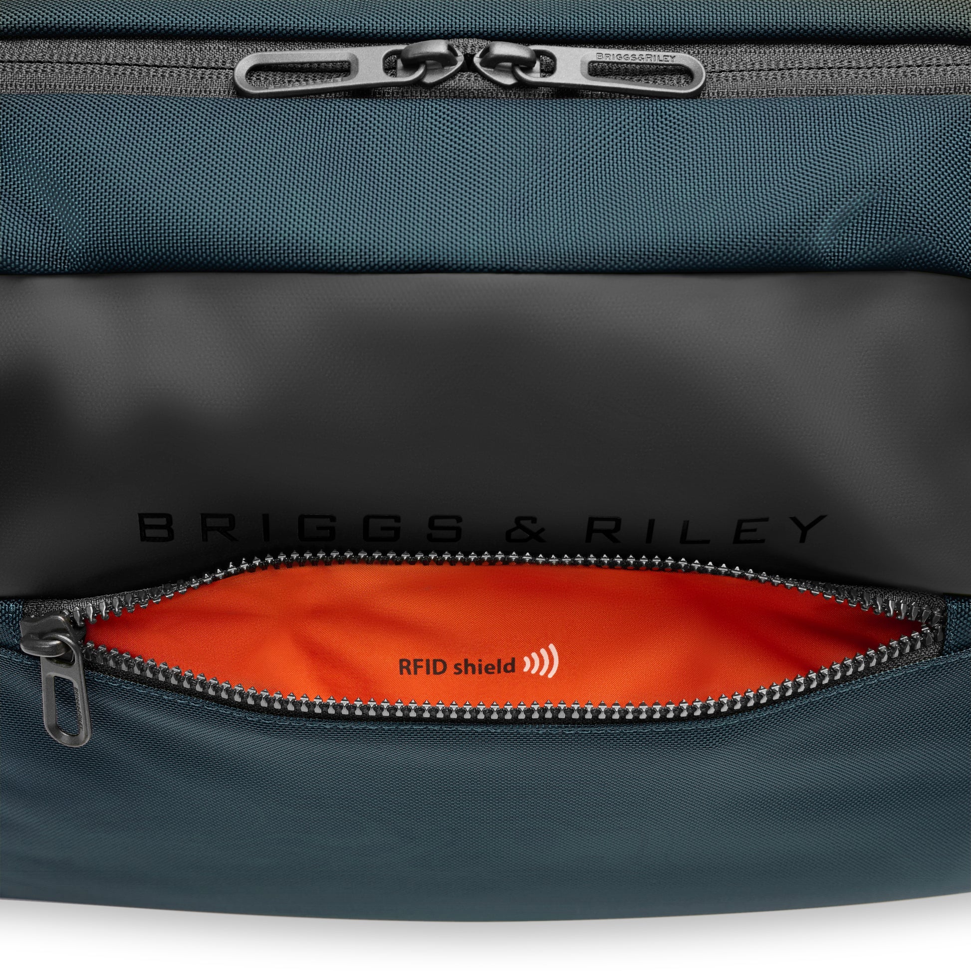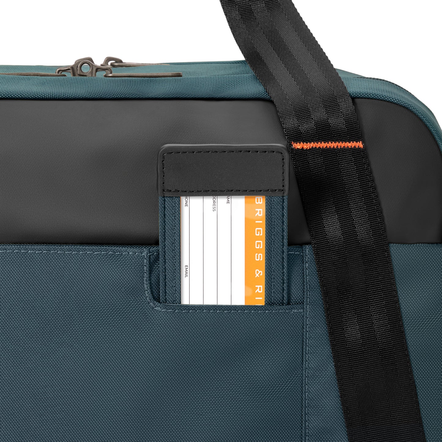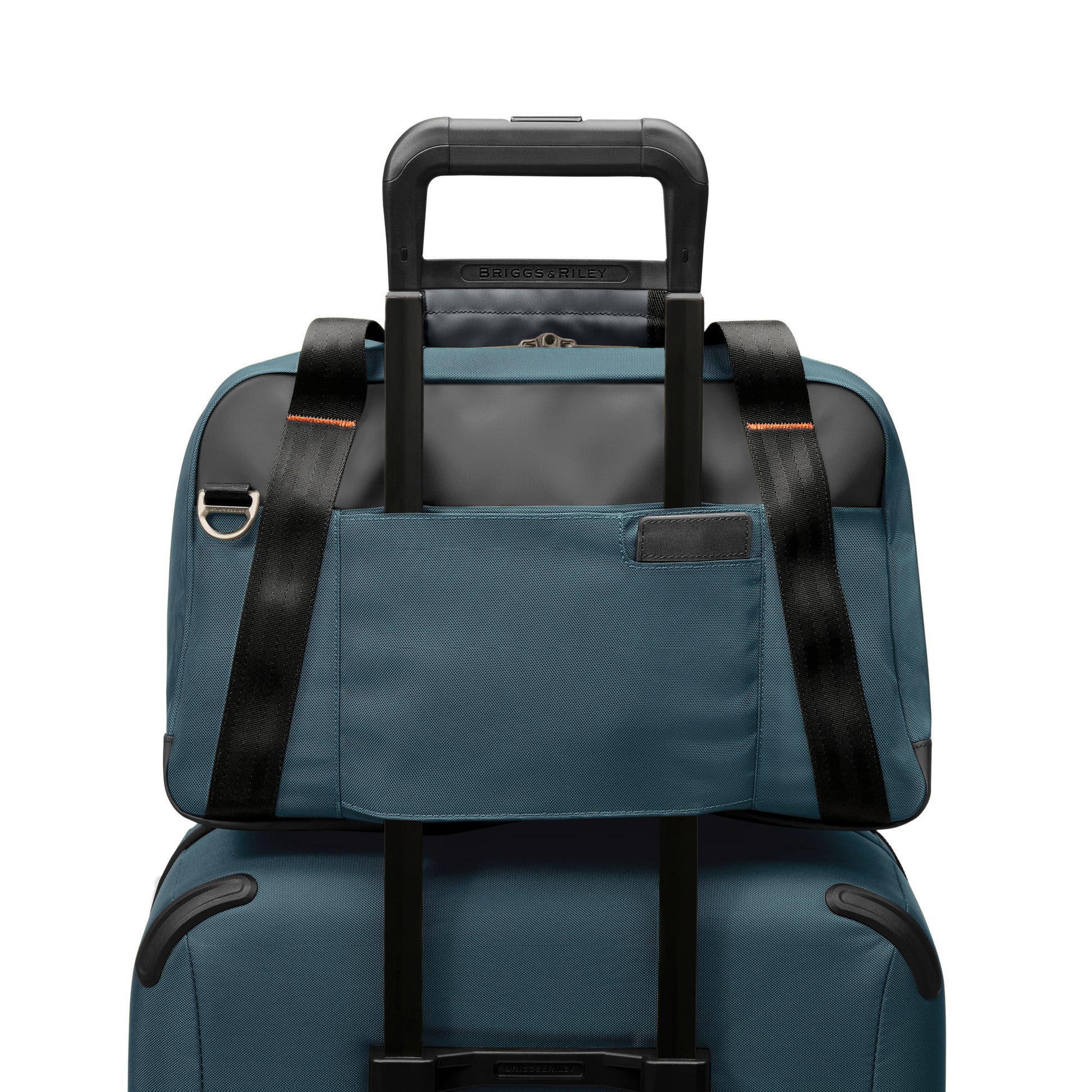 - Slip-through back panel allows bag to slide over any Briggs & Riley Outsider® handle for seamless transportation of two bags as one.