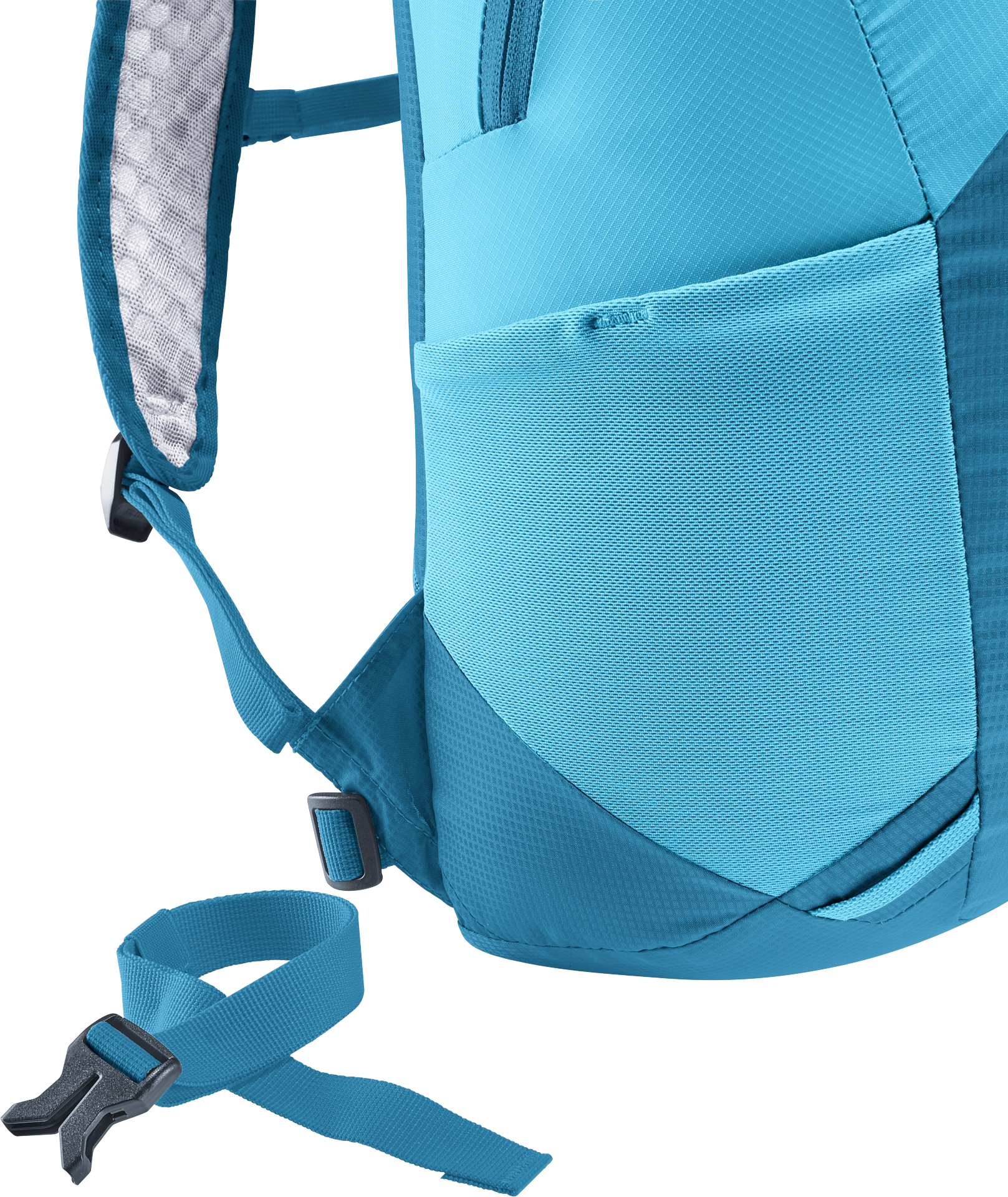 This pack is speedy, light and sustainable thanks to deuter’s Lite back system, ergonomic, perforated shoulder straps, a detachable waist belt, precision-adjustable sternum strap and 100% recycled, bluesign® certified body fabric. Designed for fast-paced hiking, side compression straps effectively reduce load wobble and enable full range of movement. This helps save energy over longer distances too.