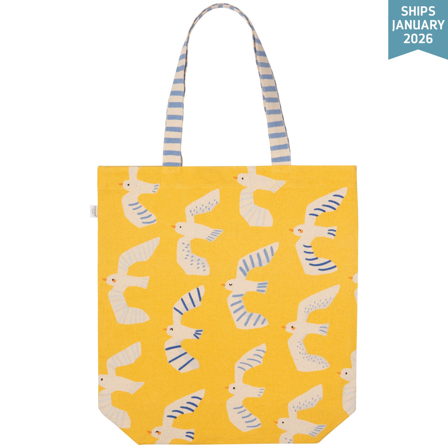 Generous cotton tote bags pack a lot of personality and more. Treasures from the farmer's market, library, or store fit with ease. The reinforced stitching and flat bottom allow for easy packing, and long handles make carrying a breeze.
