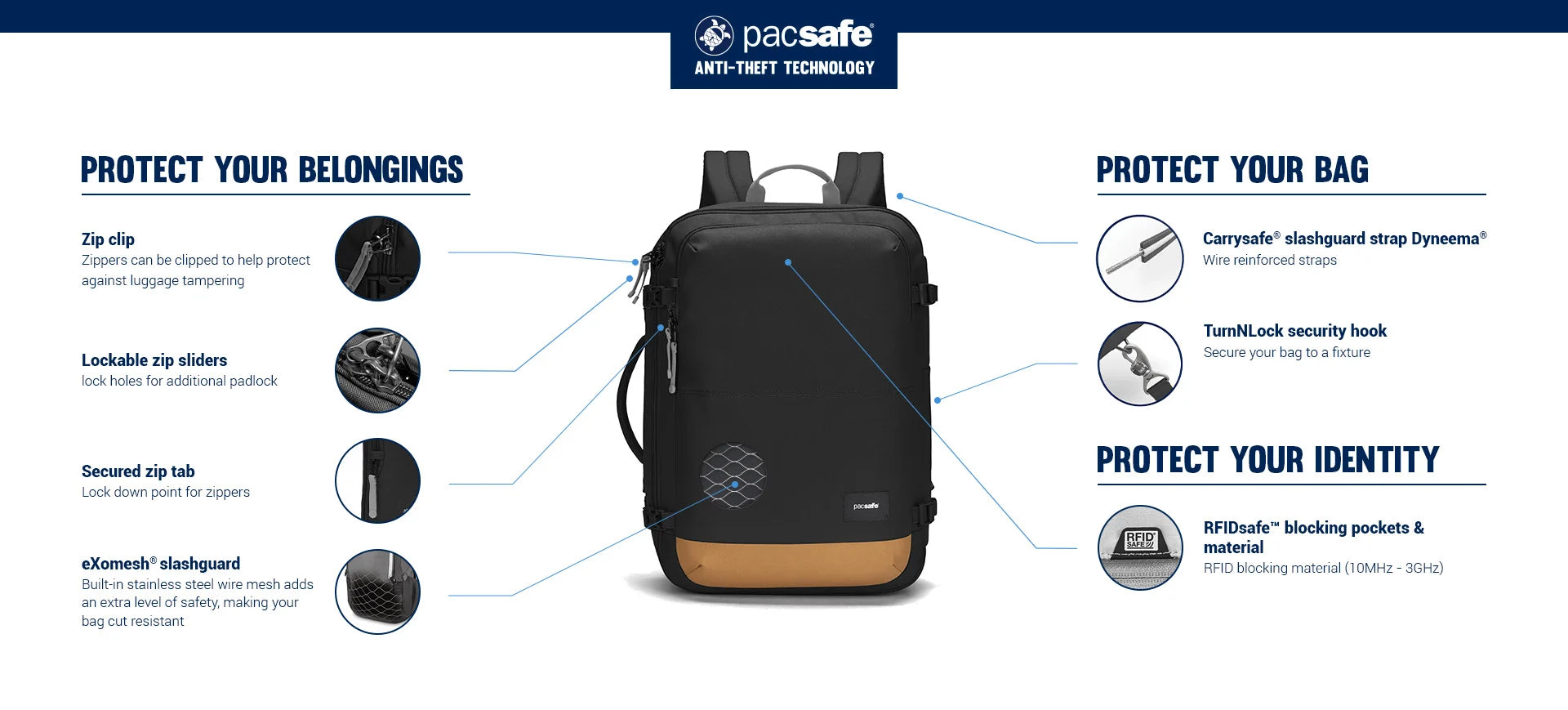 - Carrysafe® slashguard strap with Dyneema®