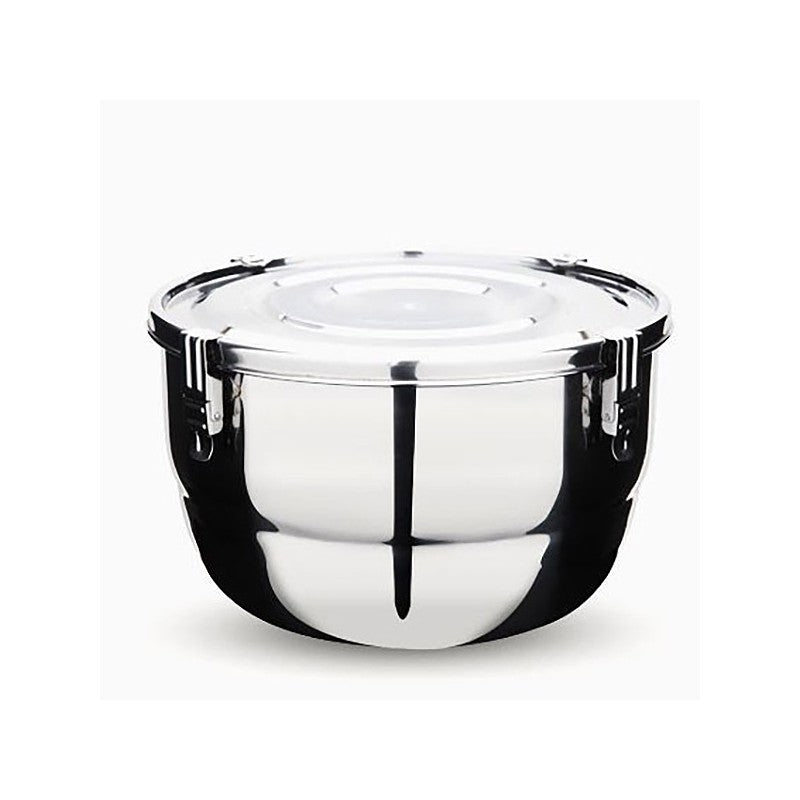 These round airtight food storage containers are amazing! Available in three sizes, they will fill your every need. They are made from 18/8 food grade stainless steel (the best you can get) and the lid has a silicone seal. These containers are completely airtight. You can also write on the lids with a non-permanent marker, so you can specify contents, date and owner.