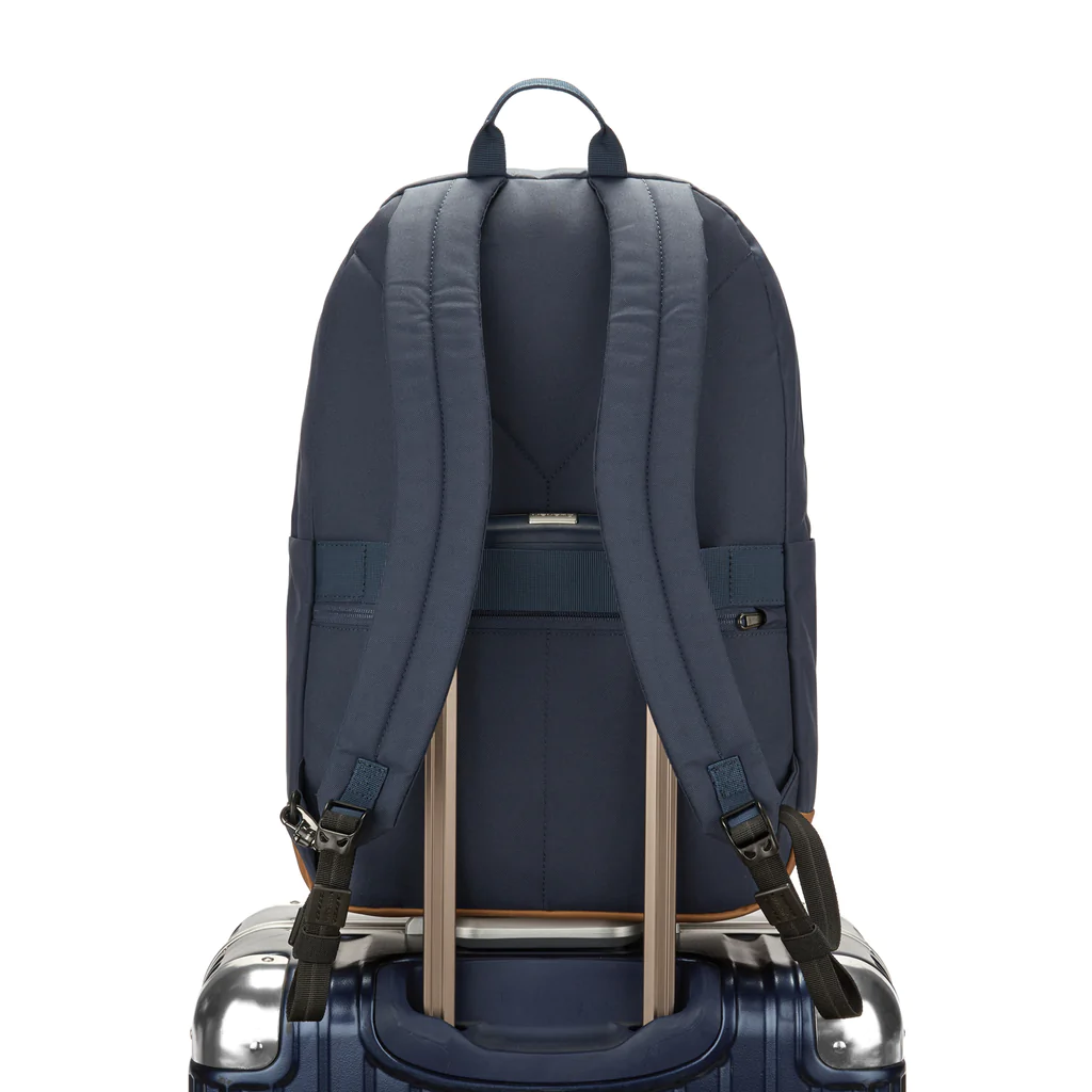 Spacious and practical, this durable anti-theft backpack is designed to fit all the essentials you need, including a padded compartment for your laptop, a luggage slip, and side pocket for a reusable water bottle. There’s even a hidden storage pocket for extra protection to keep your phone and wallet. This backpack features cut-resistant materials and straps, securable zippers, and an RFID blocking pocket. Our GO collection unlocks adventure and possibility with anti-theft security and effortless function. Made from 31 recycled plastic bottles.