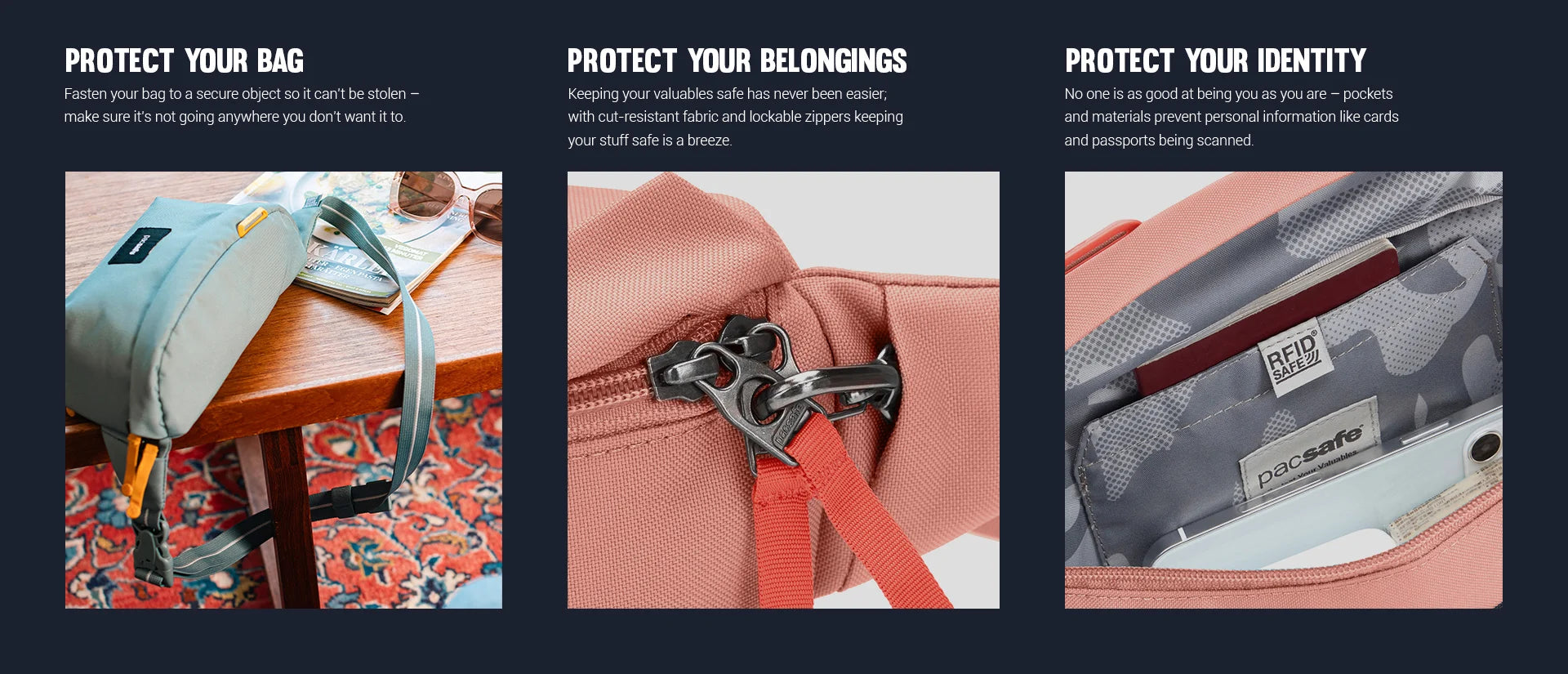 The sling pack is a handy, functional, and not to mention stylish, way of carrying all your day trip essentials. The perfect accessory for someone on the GO! The GO sling pack is ideal for city day trips, long walks or sightseeing, music festivals, bike rides, or a night out. Our GO collection unlocks adventure and possibility with anti-theft security and effortless function. Made from 6 recycled plastic bottles.