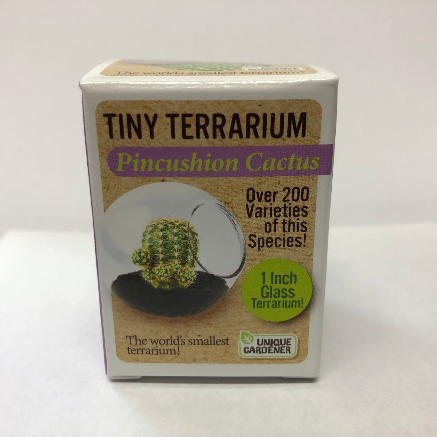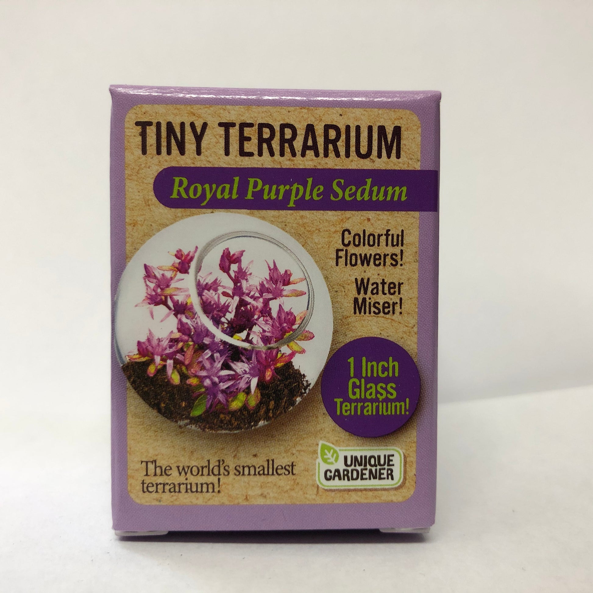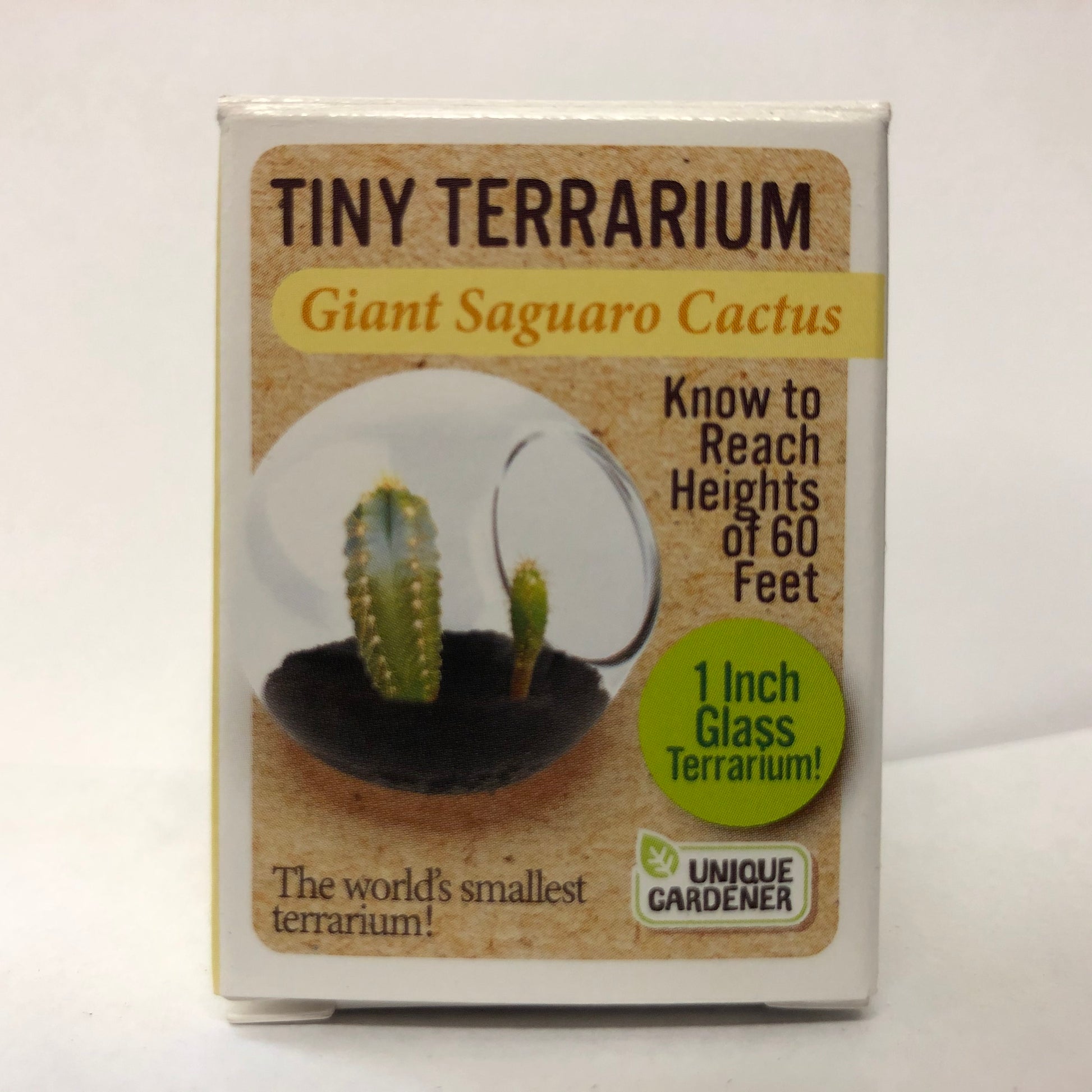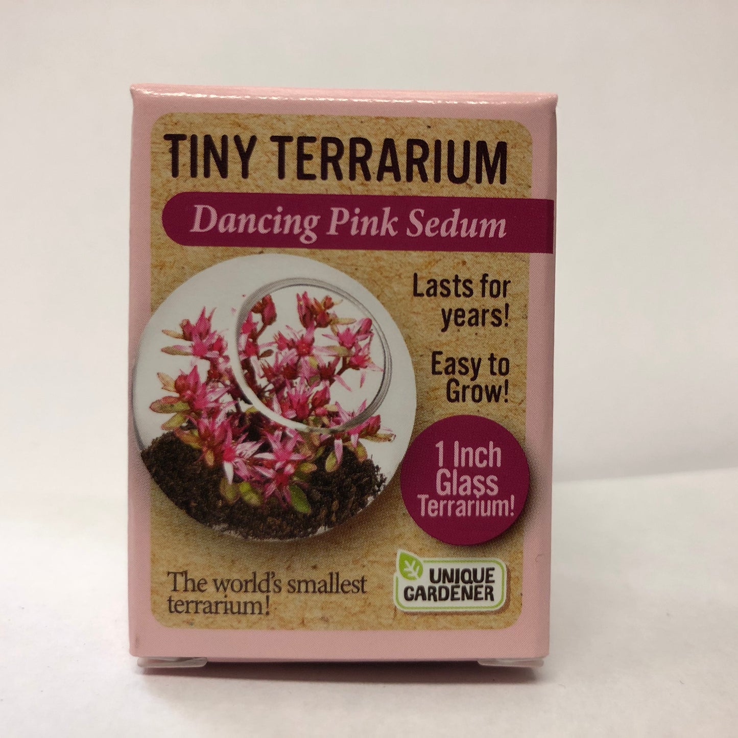 - Box content includes tiny glass terrarium, soil and seeds. Instructions are printed on packaging